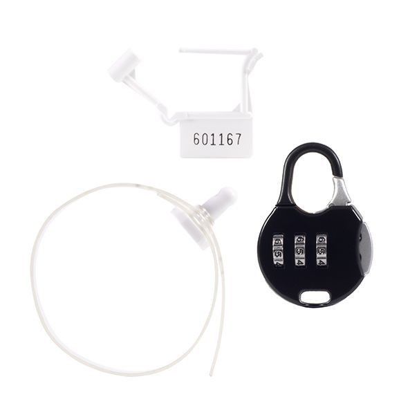 - 6 jednorazowych kłódek z tworzywa sztucznego