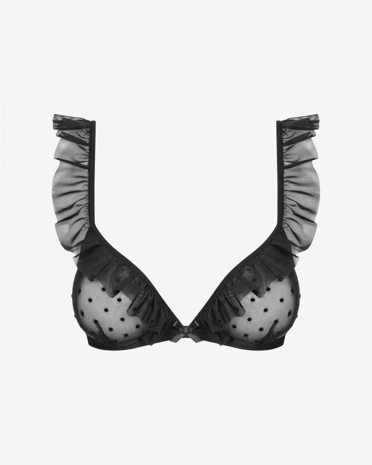 The Alisson see-through frill bra is also decorated with polka dots on a see-through mesh. This solution makes the female breasts naturally exposed and underlined.