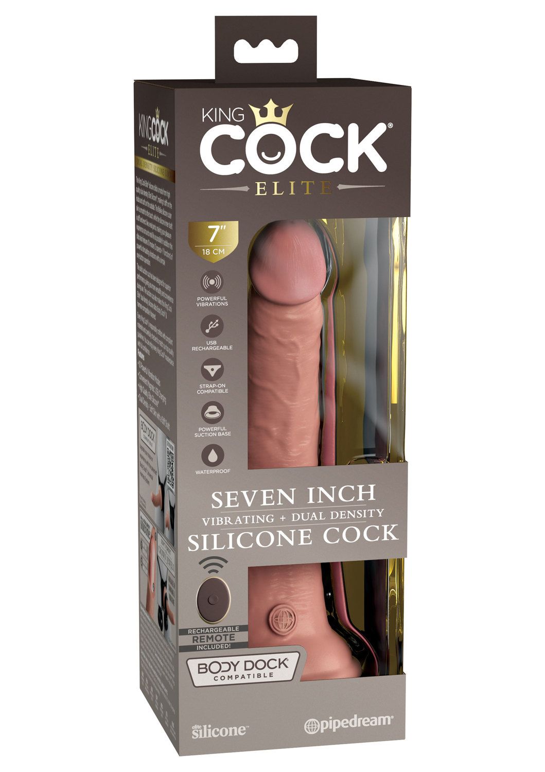 Silikonowe dilda i wibratory King Cock Elite® są wykonane z wysokiej jakości Elite Silicone™ o podwójnej gęstości. Realistyczna silikonowa warstwa zewnętrzna jest gładka w dotyku, a twardy silikonowy wewnętrzny trzon jest sztywny i wyprostowany świetnie imitując prawdziwego penisa, dzięki temu ma się wrażenie, że uprawia się seks z prawdziwym facetem! Ponadto ten wibrator oferuje również 10 trybów (3 prędkości + 7 funkcji) silnych stymulujących wibracji za pomocą prostej obsługi jednym przyciskiem. Każdy King Cock® jest wytwarzany z specjalistycznych i bezpiecznych materiałów i dokładnie sprawdzany, aby spełniał wytyczne dotyczące najwyższej jakości jaką oferuje producent. Używaj tylko z wodnymi lubrykantami.