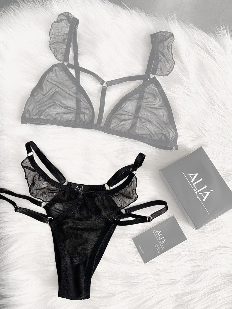 Majtki ANGEL to wyjątkowa bielizna od Alia Lingerie. Miękkie, koronkowe stringi z wysokim stanem oraz ozdobnymi paseczkami udekorowanymi tiulowymi obszyciami, podkreślą figurę i optycznie wydłużą nogi. Wszystkie paski mają możliwość regulacji by zapewnić Ci komfort przez cały dzień. Tworzą niepowtarzalny, zmysłowy i kobiecy komplet z biustonoszem ANGEL. Ta kompozycja podkreśli Twoje naturalne piękno i dziewczęcą urodę.