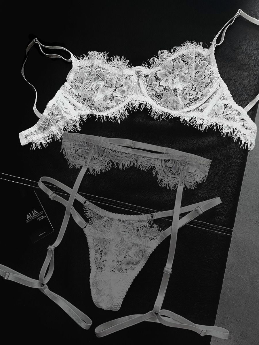 Biustonosz PRETTY, to wyjątkowa, koronkowa bielizna w kolorze klasycznej bieli od Alia Lingerie. Prosty krój, zbierający biust, sprawdzi się w codziennych stylizacjach ale również podkręci atmosferę w sypialni. Materiał jest miękki i delikatny dla ciała. Ramiączka oraz obwód zapewniają regulację by dopasować się do Twoich kształtów. Tworzy piękny komplet z majtkami i pasem PRETTY.