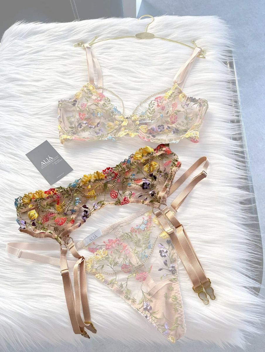 Pas SABINA, to propozycja wykonana z niepowtarzalnej, pięknej haftowanej koronki od Alia Lingerie. Szeroki pas jest niezwykle miękki i elastyczny, a dzięki regulowanym paskom, możesz dopasować go do swojej figury. Wielobarwny, kwiecisty haft podkreśli Twoją osobowość i naturalna urodę. Tworzy zmysłową kompozycję z biustonoszem i majtkami SABINA.