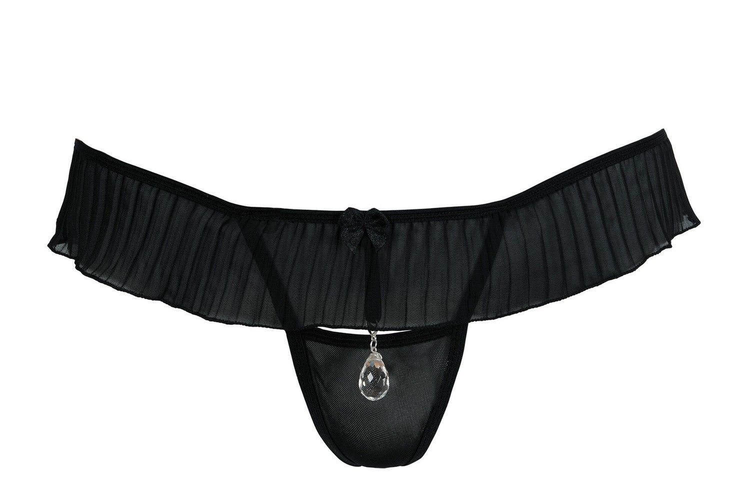 Anais Spice Up stringi są niezwykle finezyjne i oryginalne. Ich ciekawy fason momentalni rzuca się w oczy. Seksowne połączenie delikatnego, tiulowego materiału, powabnej falbanki i biżuteryjnej zawieszki na pewno podziała na wyobraźnię. Cienki pasek materiału przebiegający przez środek został wykonany z niezwykle delikatnego materiału. Zarówno z przodu stringów, jak i z tyłu znajduje się urocza kokardka, idealnie pasująca do całości. W takiej bieliźnie poczujesz się niezwykle kobieco.