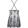 Seksowna koszulka Axami V-9789 to niezwykle zmysłowa koszulka typu Babydoll, która oczaruje delikatnym wzorem czarnej koronki. Bogato zdobiona koronka pięknie okrywa ciało, łącząc w sobie urok delikatności i subtelnej pikantności. Koszulka posiada skrzyżowane ramiączka, które dodają nuty seksapilu i jednocześnie są regulowane, umożliwiając dopasowanie do indywidualnych preferencji. Ramiączka są nieodpinane, co dodaje lekkości i swobody ruchów.