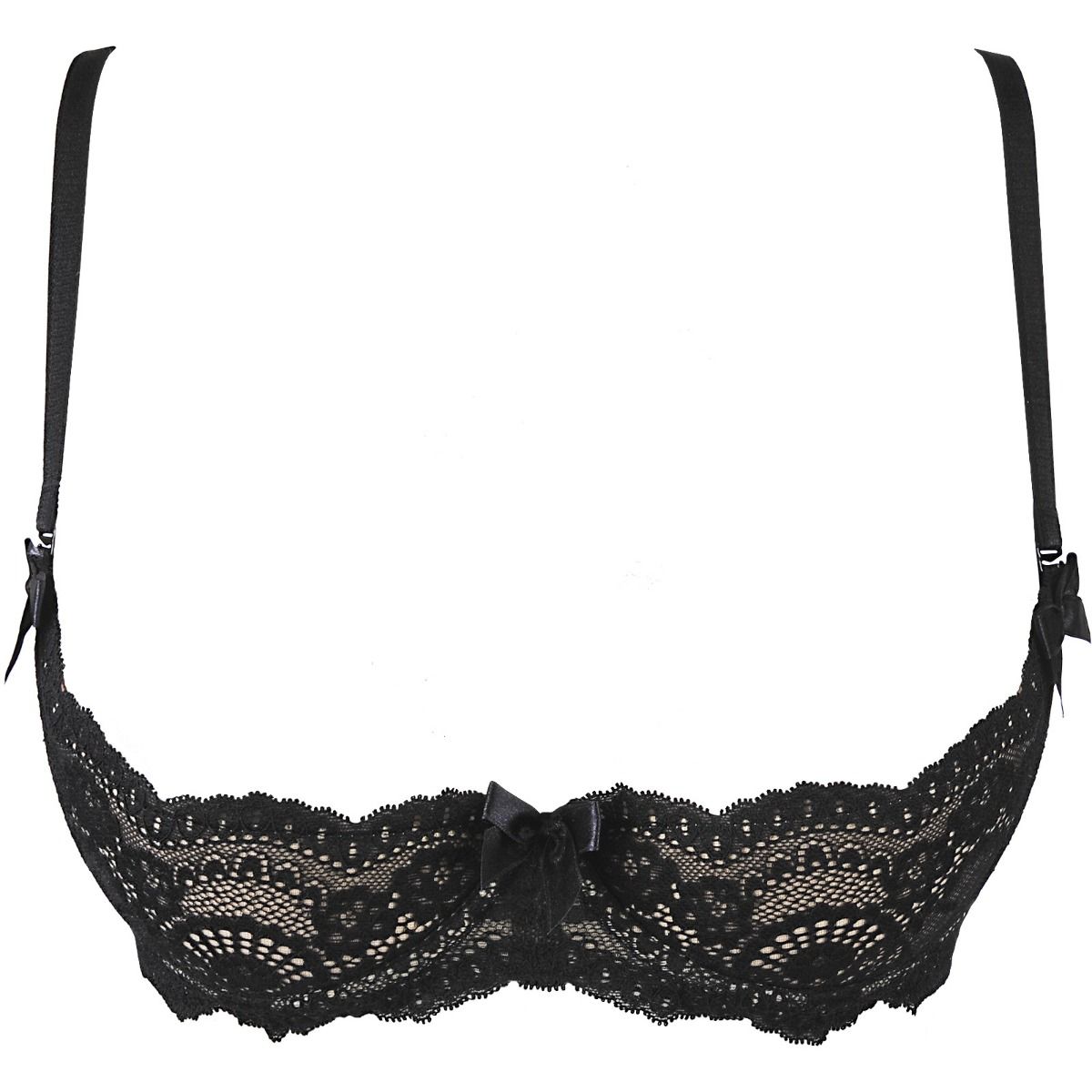 Biustonosz Axami V-9861 zachwyca swoim romantycznym charakterem dzięki subtelnej czarnej koronce i beżowemu flizowi na miseczkach. Są dodatkowo wypełnione, ale zabezpieczone delikatnym drutem oraz fiszbinami bocznymi, co zapewnia naturalne podkreślenie kształtu biustu. Tył wykonany z tiulu posiada odpinane, regulowane ramiączka i podwójną haftkę na zapięciu, gwarantując idealne dopasowanie. Mała kokardka z przodu dodaje biustonoszowi uroku i kobiecego charakteru.
