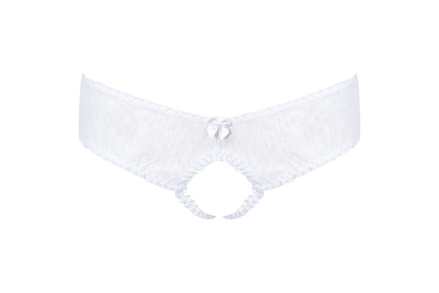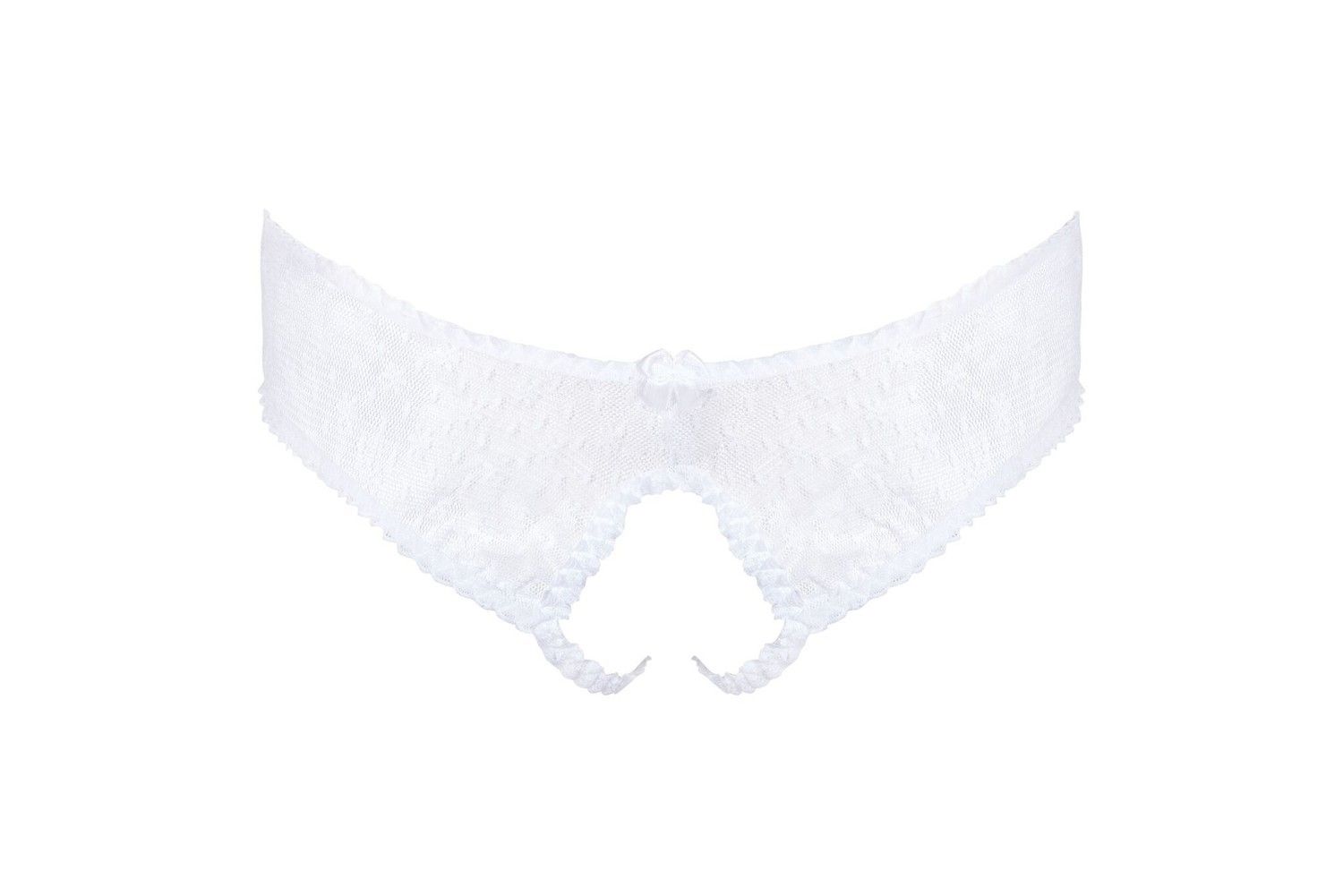 Anais Kitten figi otwarte to bardzo zmysłowe majteczki o charakterze erotycznym. Przód i tył jest zrobiony z delikatnej i przyjemnej dla ciała, wzorzystej koronki. Motyw florystyczny idealnie tu pasuje i prezentuje się uwodzicielsko. Kokardki jako dodatek stanowią piękną ozdobę. Niegrzecznym elementem, seksownym i na pewno kuszącym, jest otwarte krocze.