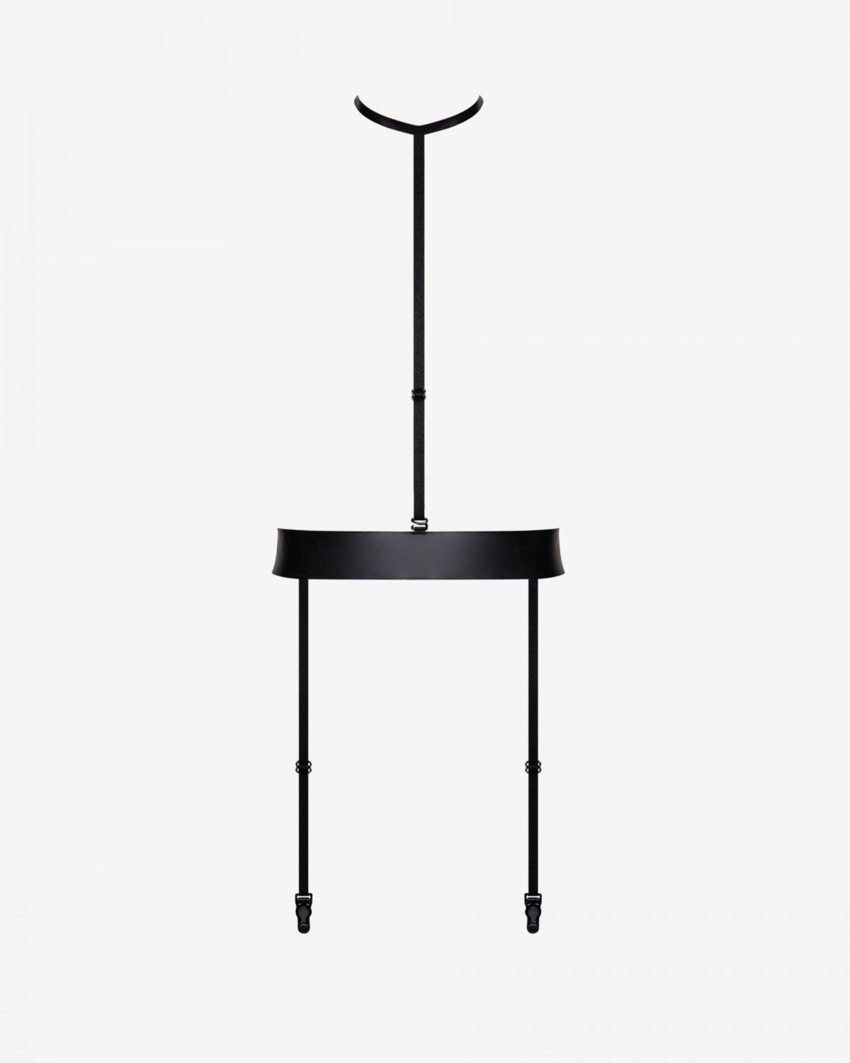 Body harness to sztandarowy dodatek do bielizny Promees. Jego fenomen tkwi w zmysłowym wykorzystaniu paseczków, seksownie oplatających kobieco ciało. Charlotte to model, który wyróżnia się klasycznym krojem oraz skórzanym materiałem, wykonanym z ekologicznych składników. Charlotte cechuje szeroki pas na wysokości talii, który doskonale wysmukla i optycznie wyszczupla sylwetkę. Taki wyrazisty dodatek sprawia, że każda kobieta poczuje się w nim pewnie! Skórzany pas do pończoch i harness w jednym! Model Charlotte został zaprojektowany w taki sposób, że umożliwia również doczepienie do niego pończoch. Zawartość czarnych żabek i regulacja w paskach pozwala na łatwe dopasowanie do sylwetki. Skórzaną bieliznę od Promees, wyróżnia erotyzm, kobieca siła i niezwykły urok. W zestawieniu ze skórzanym biustonoszem i otwartymi majtkami Charlotte, harness stworzy spójną kompozycję, obok której nie można przejść obojętnie.