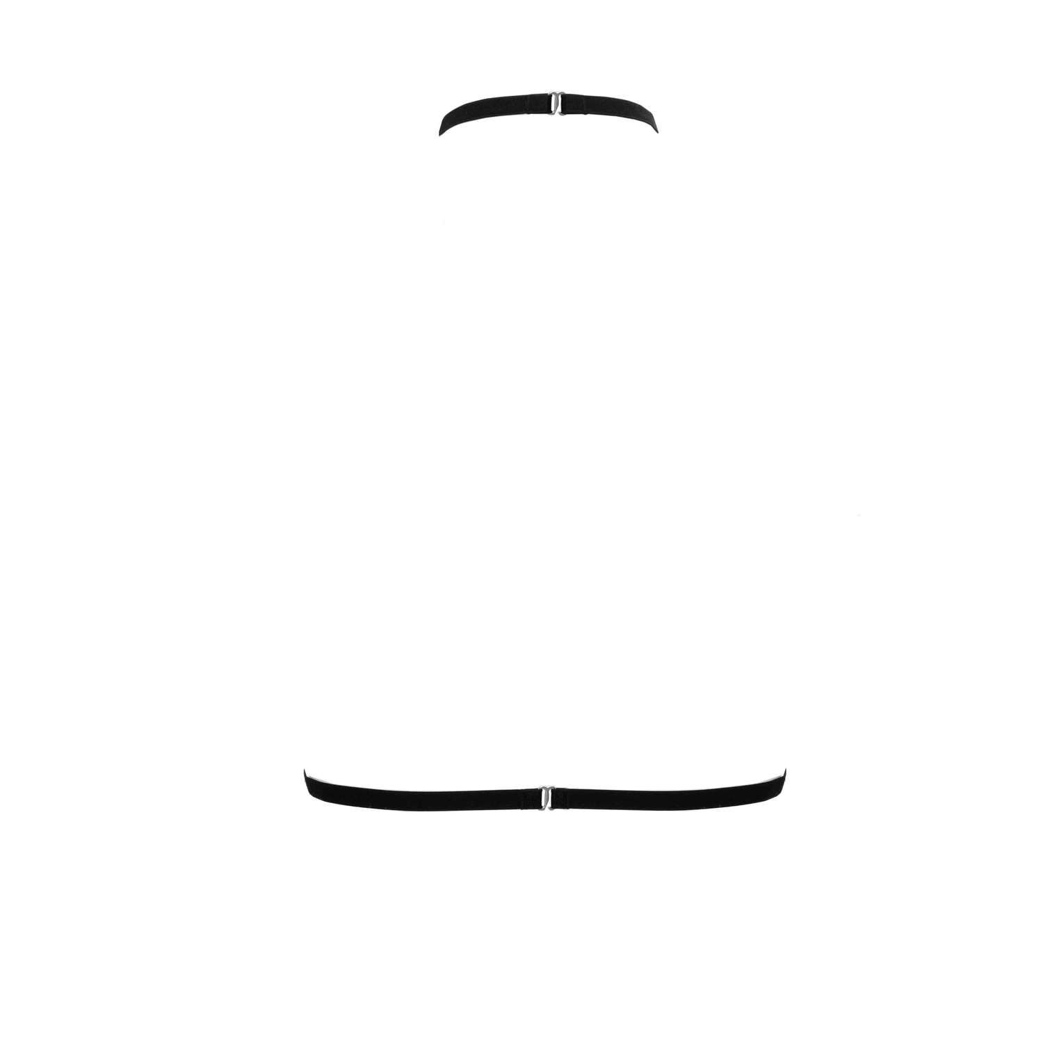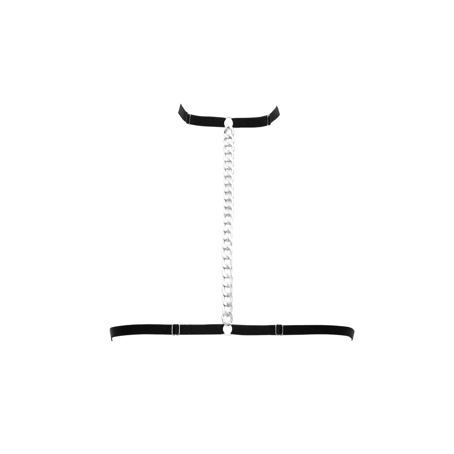 Choker BOND, to piękny dodatek od Alia Lingerie. Paski wokół szyi oraz pasa, są bardzo wygodne i przyjemne w dotyku. Pełna regulacja harnessu umożliwia jego dopasowanie do ciała, by był on jak najbardziej komfortowy podczas noszenia. Dzięki regulacji występuje w jednym, uniwersalnym rozmiarze. Łańcuszek jest gruby, co fantastycznie urozmaici codzienną stylizację. Choker sprawdzi się również jako dodatek do bielizny, nada jej seksowności i zmysłowości.