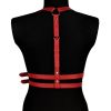 Starannie skrojone paski o szerokości 2 cm w modelu czerwona skórzana uprząż na ciało Karess Nastia oplatają talię i ramiona, nadając nie tylko codziennym stylizacjom, ale także wieczornym spotkaniom wyjątkowego uroku. Dzięki wysokiej jakości skórze, uprząż Nastia zapewnia komfort noszenia przez cały dzień.