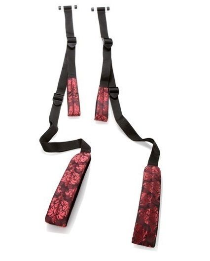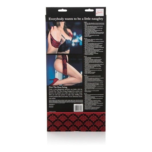 Huśtawka na drzwi Scandal Over the door to gadżet wprost stworzony do niegrzecznych i zmysłowych zabaw we dwoje. Został on wyposażony w dwie osobne blokady. Przekłada się je przez drzwi i w ten sposób tworzy się prosta huśtawka. Miękkie opaski na uda powodują, że kobieta może swobodnie usiąść i zacząć się ruszać. Zestaw posiada również opaski na ręce, które zrównoważają rozkład ciężaru. Całość posiada szeroki zakres regulacji. Użyte materiały są miękkie i nie powodują otarć. Już teraz wypróbuj Scandal Over the door.