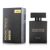 Magnetifico Selection for Man to kompozycja perfum z dodatkiem niesamowitych feromonów. Całość jest wprost stworzona dla nowoczesnego mężczyzny, który chce działać na otoczenie za sprawą odpowiednio wyeksponowanej atrakcyjności i pewności siebie. Ten bardzo trwały i jednocześnie męski zapach pobudza na zmysły i pozostawia po sobie wrażenie nie z tej ziemi. Truskawka, jabłko, ananas, grejpfrut, szałwia dają bardzo przyjemny, owocowy aromat. Mięta, suche drzewo, jaśmin, cynamon, gałka muszkatołowa dodają kompozycji oryginalności, zaś tonka, wanilia, piżmo i kwiat pomarańcza zdecydowane wzmacniają ją. Magnetifico Selection for Man spowodują, że kobiety się Tobie nie oprą, a mężczyźni będą podziwiać Twoją pewność siebie.