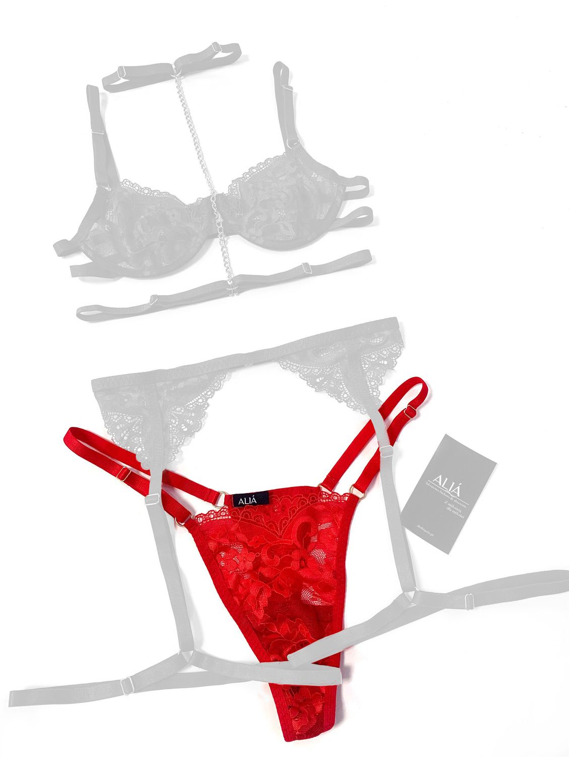 Majtki TERRY, to piękny element bielizny. Koronkowe stringi odsłaniają ale i uwydatniają pośladki. Cienkie paski boczne optycznie wydłużają nogę i podkreślają figurę. W dodatku są regulowane by dopasować się do każdej figury. Krwista czerwień w jakiej dostępne są majtki, to kolor kobiecej siły i seksapilu. Tworzą przepiękny komplet z chokerem TERRY, biustonoszem TERRY oraz pasem TERRY. Idealny by zaskoczyć drugą połówkę i nieco podgrzać atmosferę w Waszej sypialni.