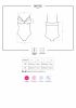 Obsessive 818-TED-1 body jest przyozdobione motywem różyczek. Dzięki kuszących, podwójnym gumeczkom na dekolcie, Twoje piersi zostaną podkreślone w odpowiedni sposób. Połyskująca zawieszka na biuście idealnie pasuje do całości. Uwagę przykuwa również zalotna koronka pod piersiami, na udach i pośladkach. Pikantny, otwarty krok zachęca do zabaw i sprawia, że strój nie jest tak niewinny, na jaki wygląda. Regulowane szelki zapewniają świetne dopasowanie. Obsessive 818-TED-1 body wykonano z delikatnego w dotyku, elastycznego materiału (85% poliamid, 15% elastan).