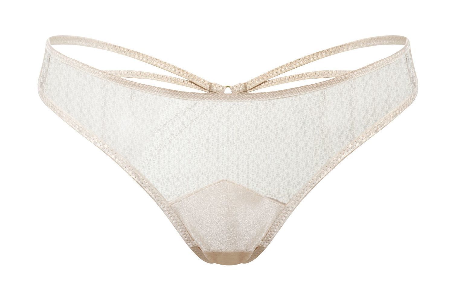 Perilla Apologise Panties to seksowne majtki, wykonane z miękkiego tatuażu. Zabudowany przód sprawia, że są one wygodne i idealnie dopasowują się do ciała. Ich wyjątkowy charakter, podkreśla zwłaszcza tył- jest on ażurowy i składa się z elastycznych paseczków. Połączenie ich złotym elementem, nadaje całości ciekawego wyglądu i sprawia, że każda kobieta poczuje się w nich wyjątkowo. Majtki te stworzą idealny zestaw z biustonoszem z linii Apologise.