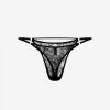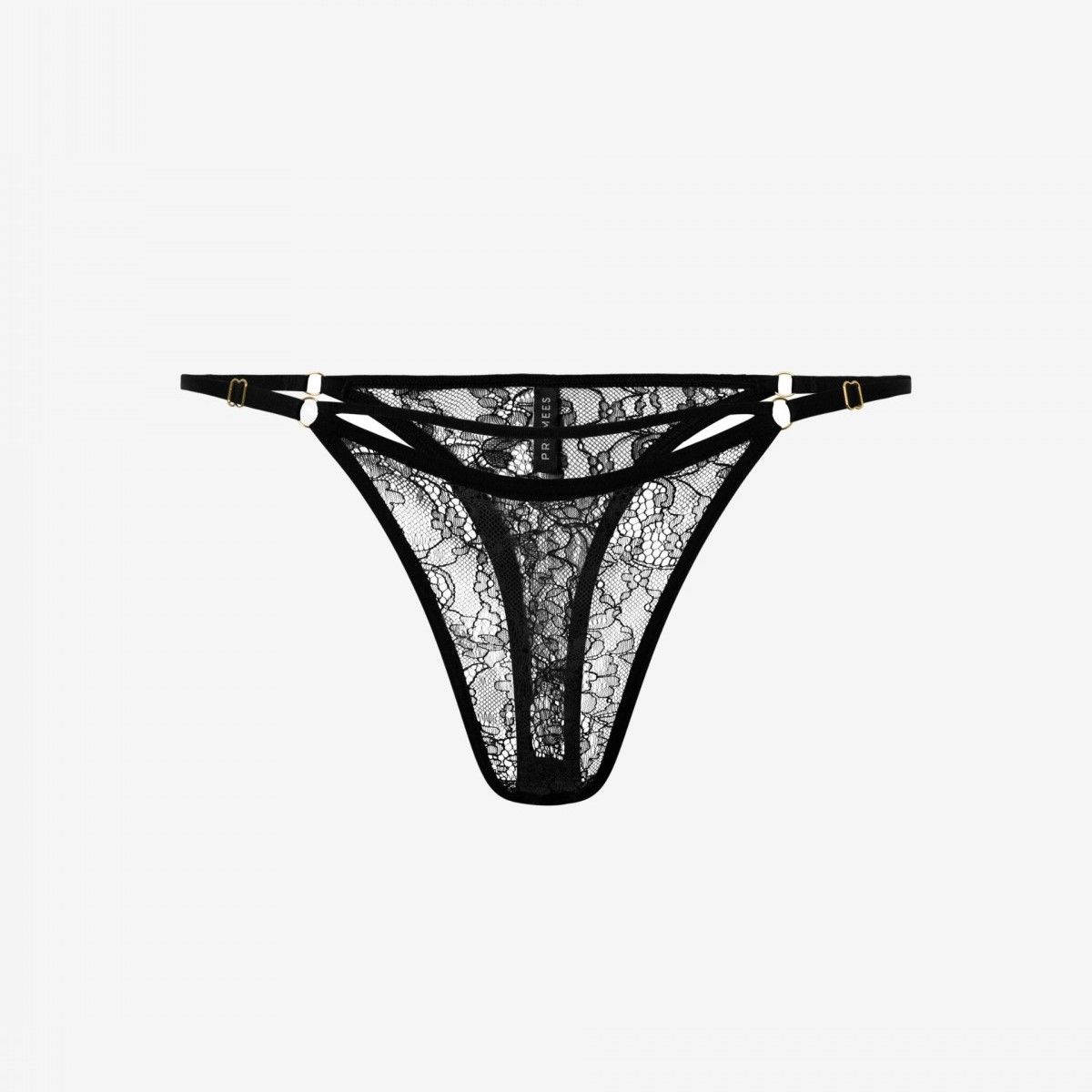 Niewiele rodzajów bielizny damskiej wygląda równie seksownie i uwodzicielsko, co stringi z koronki. Ich niewątpliwy wdzięk oraz zmysłowość wynika przede wszystkim z połączenia uroczego i subtelnie prześwitującego materiału, kwiatowego motywu, złotych elementów oraz atrakcyjnego kroju. Dużą wartość ma także czarny kolor bielizny, którego ponadczasowość pasuje do każdego typu urody, wielu strojów i dowolnych okazji.