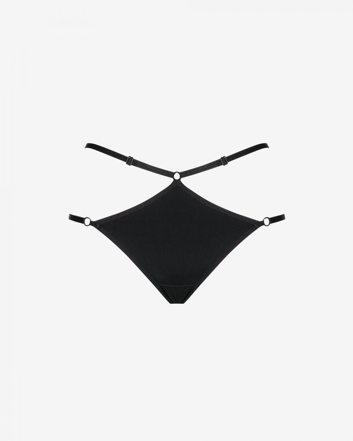 Czarne majtki Tiana wyróżniają się intrygującymi paskami, które zmysłowo oplatają ciało. Położone wyżej, elegancko zaznaczają kobiecą talię. Położone niżej, stanowią odważne połączenie między przodem a tyłem majtek.