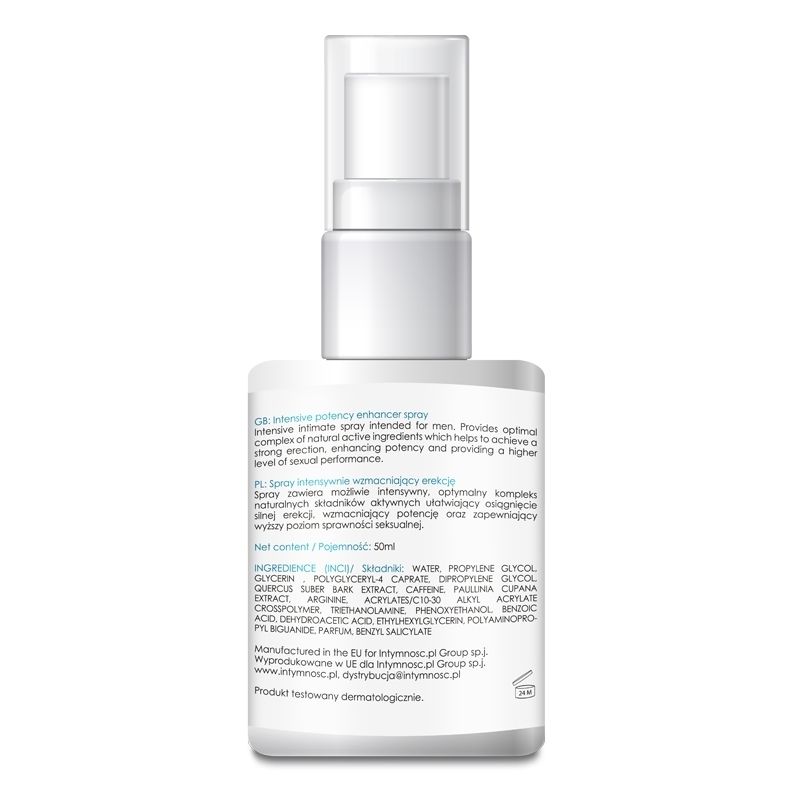 SHS Potency Spray to spray wzmacniający erekcję 50 ml. Od teraz Twoje typowe męskie dolegliwości, zostaną w szybki sposób rozwiązane. Będziesz w końcu mógł się cieszyć silniejszą i mocniejszą erekcją, która będzie dłużej trwała. Jakość Twojego życia seksualnego się znacząco poprawi. Dodatkowo, preparat pozwoli Ci osiągnąć kolejną erekcję po ejakulacji. Dzięki temu, że środek jest jednocześnie lubrykantem na bazie wody, możesz go stosować z prezerwatywami. Skład SHS Potency Spray opiera się na produktach pochodzenia roślinnego:
