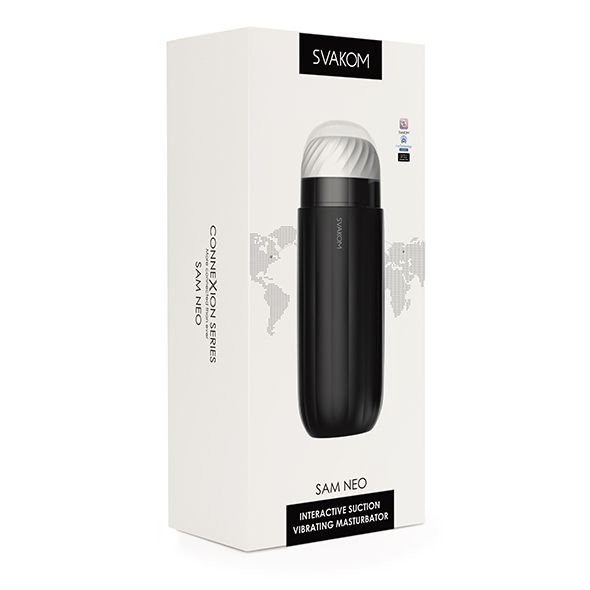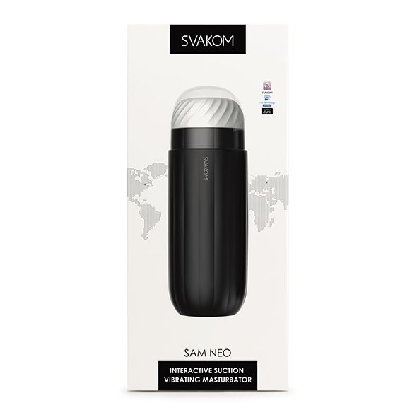 Zawartość opakowania: Masturbator Sam Neo, instrukcja obsługi, przewodnik po aplikacji, kabel do ładowania
