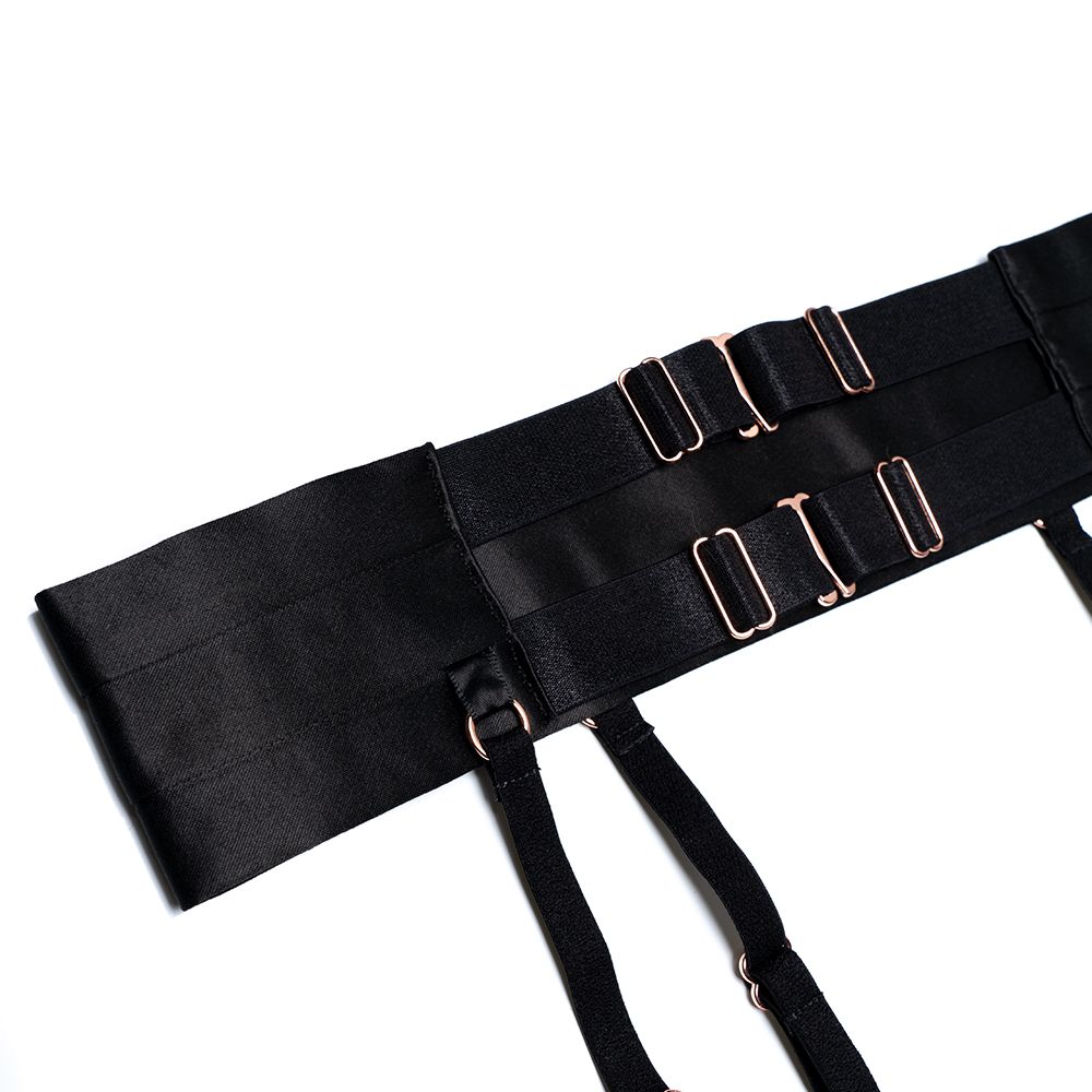 - Regulowane pasy do pończoch z grubym, satynowym pasem podkreślającym talie,