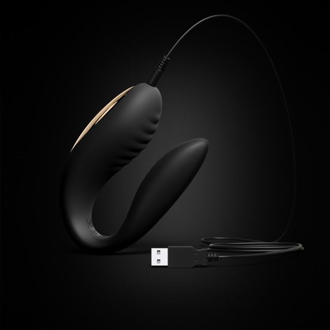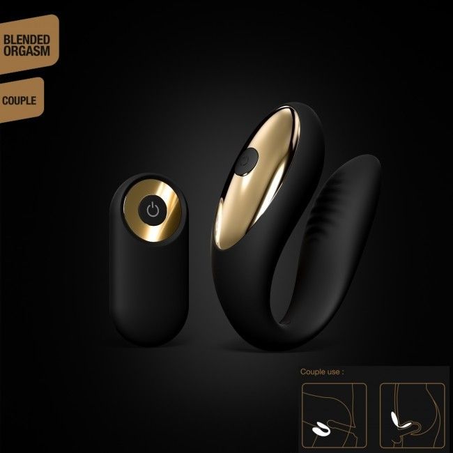 Wibrator dla par z pilotem Dorcel Perfect Lover kusi bardzo ciekawym, luksusowym wyglądem. Kolor czarny łączy się tutaj z złotymi wstawkami – fani eleganckiego designu z pewnością to docenią.